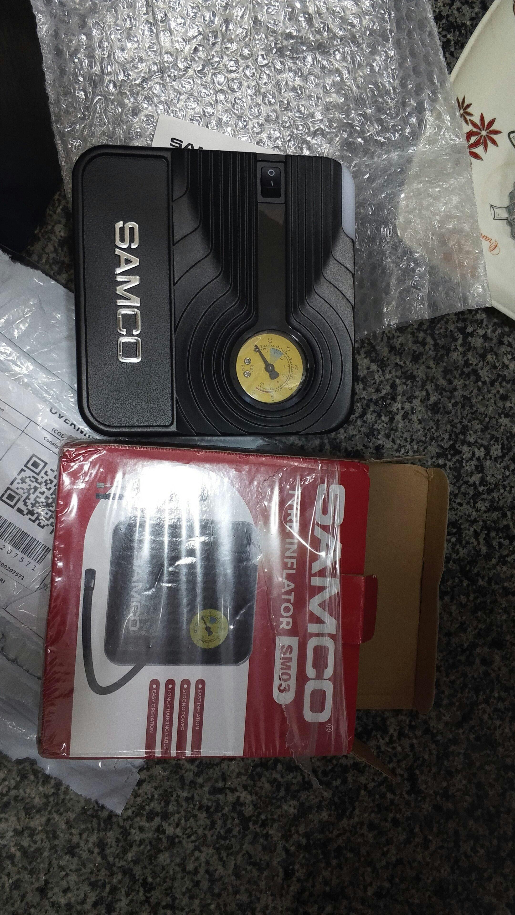 Samco Portable Air Compressor/Tyre Inflator SM03 is a very handy device for all families to have in their household. This product is also very portable as it can be stored easily on shelves. This air compressor is very easy to use. Simply turn your vehicle on, plug in the air compressor, and inflate.
