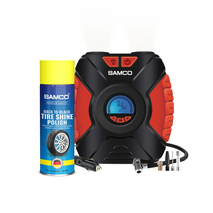 Samco Digital Tyre Inflator with LED light - SM1618 With Tire Shine Spray